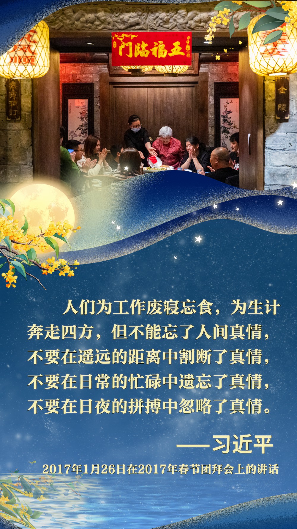 江山萬重,皓月千里??淘谥腥A兒女骨血里的家國情懷,讓每一次團(tuán)聚都成為對美好生活的禮贊,讓每一份祝福都匯聚成民族奮進(jìn)的磅礴力量。