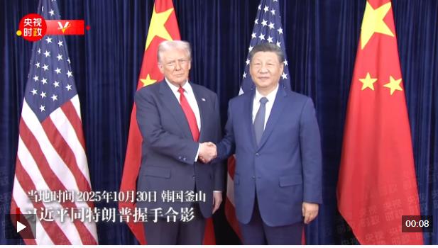 當(dāng)?shù)貢r(shí)間10月30日中午,中美元首會晤開始前,習(xí)近平同特朗普握手合影。