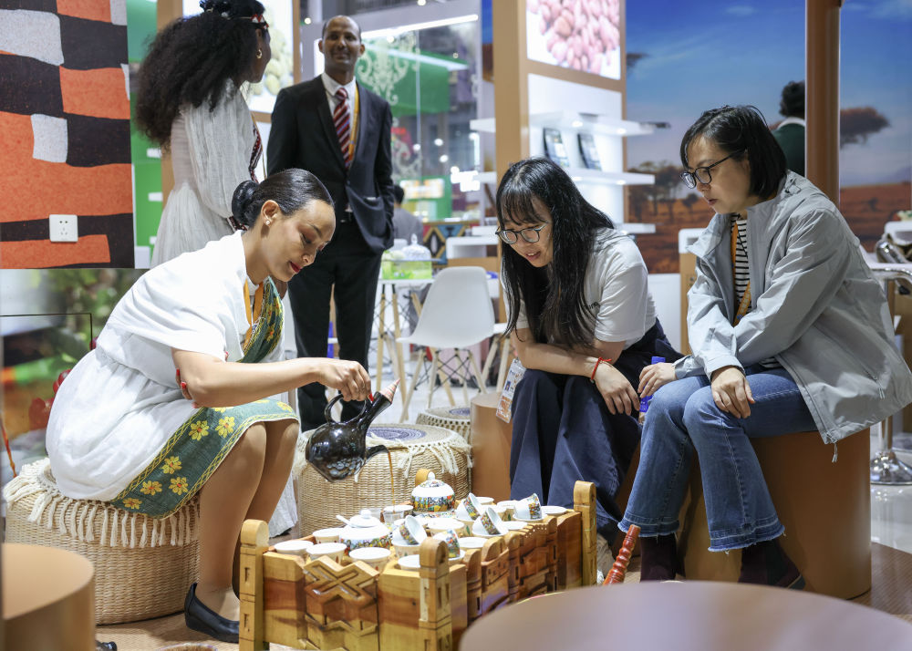 2025年11月7日,人們在第八屆進(jìn)博會國家展埃塞俄比亞館品嘗咖啡。本屆進(jìn)博會上,共有來自123個(gè)共建“一帶一路”國家的企業(yè)參展,同比增長23.1%;來自最不發(fā)達(dá)國家的企業(yè)達(dá)163家,同比增長23.5%。自首屆起,進(jìn)博會便為最不發(fā)達(dá)國家提供免費(fèi)標(biāo)準(zhǔn)展位。本屆進(jìn)博會首次為最不發(fā)達(dá)國家產(chǎn)品打造專區(qū),擴(kuò)容非洲產(chǎn)品專區(qū),支持非洲建交國用足用好100%稅目產(chǎn)品零關(guān)稅政策,非洲企業(yè)參展數(shù)量同比增長80%。