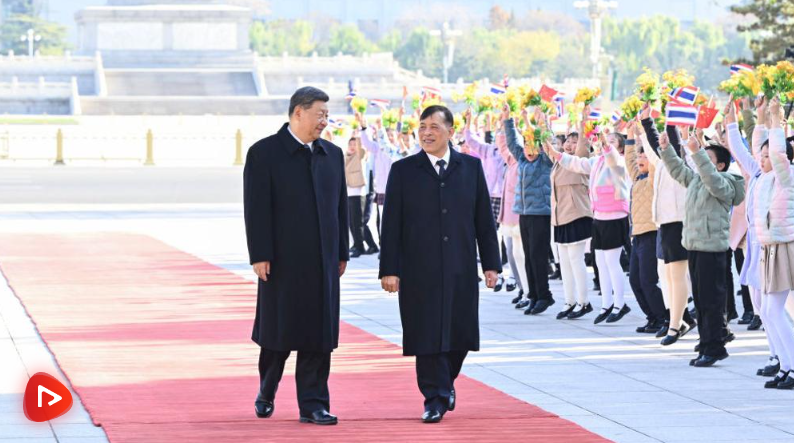 11月14日上午,國(guó)家主席習(xí)近平在北京人民大會(huì)堂會(huì)見(jiàn)來(lái)華進(jìn)行國(guó)事訪問(wèn)的泰國(guó)國(guó)王哇集拉隆功。