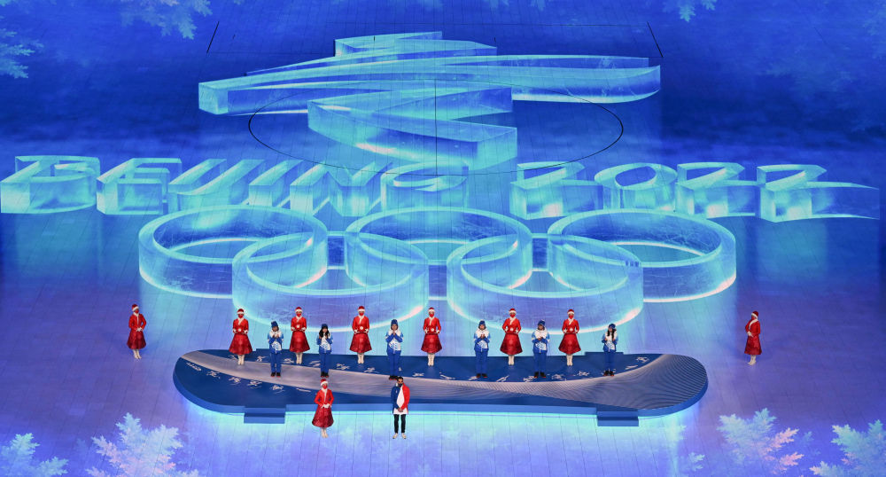 2022年2月20日晚,北京第二十四屆冬季奧林匹克運動會閉幕式在國家體育場舉行。這是向志愿者致謝環(huán)節(jié)。新華社記者 李賀 攝
