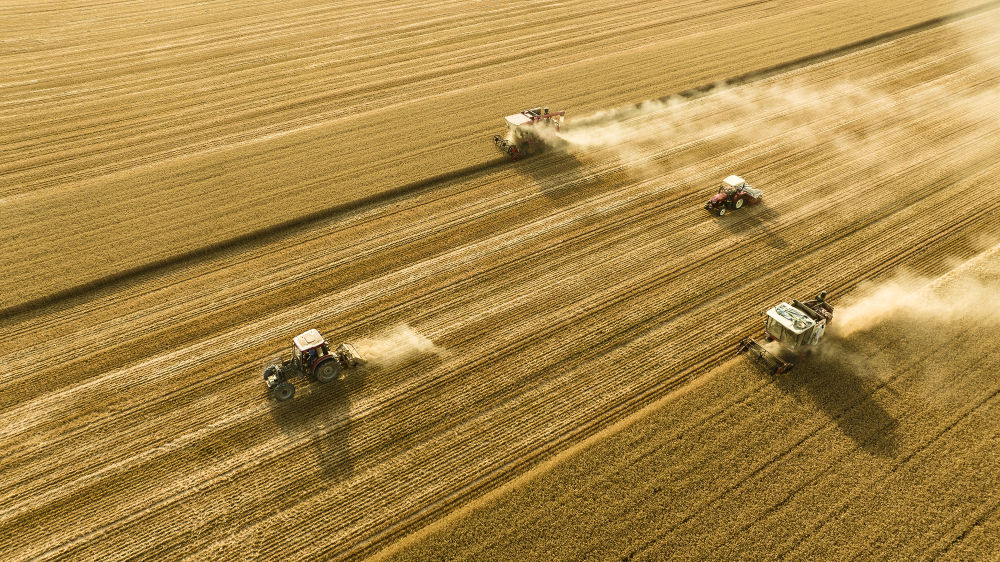2025年6月4日,在河南省商丘市梁園區(qū)李莊鎮(zhèn)潘堂村志誠(chéng)種植農(nóng)民專業(yè)合作社,農(nóng)機(jī)手操作機(jī)械在農(nóng)田作業(yè)(無人機(jī)照片)。新華社發(fā)(李恒 攝)