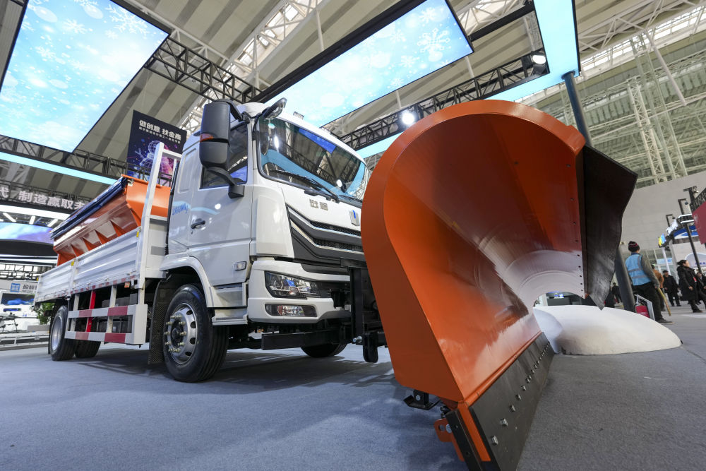 這是2026年1月6日在2026哈爾濱國際冰雪經(jīng)濟博覽會展會拍攝的大型清雪設備展品。