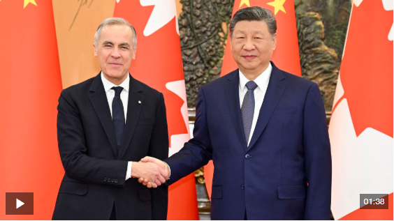 1月16日上午,國(guó)家主席習(xí)近平在北京人民大會(huì)堂會(huì)見(jiàn)來(lái)華進(jìn)行正式訪(fǎng)問(wèn)的加拿大總理卡尼。