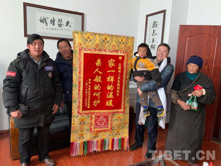 中國西藏網(wǎng)訊 12月20日,青海省玉樹藏族自治州人民醫(yī)院院長郭勇的辦公室里來了幾位特殊的客人——三歲的小尕松和他的親人。他們?yōu)楣滤蜕弦幻驽\旗,上面寫著“家一樣的溫暖,親人般的呵護(hù)”。