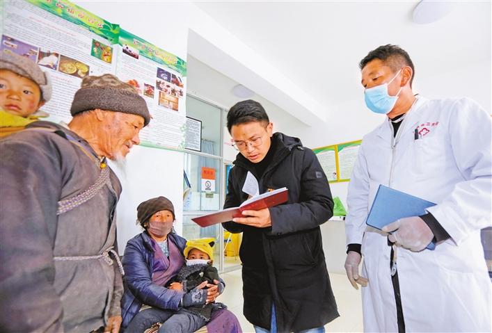 當(dāng)選十三屆全國人大代表以來,西藏山南市瓊結(jié)縣拉玉鄉(xiāng)黨委副書記江村,積極為農(nóng)牧區(qū)醫(yī)療衛(wèi)生事業(yè)發(fā)展出謀劃策。在基層調(diào)研中,他最關(guān)心的是醫(yī)療衛(wèi)生室硬件設(shè)施和醫(yī)護(hù)人員結(jié)構(gòu)等情況。在今年全國兩會上,江村將圍繞“加大對西藏基層醫(yī)療衛(wèi)生方面的支持力度”等提出建議。圖為江村(右二)深入拉玉鄉(xiāng)堆巴村衛(wèi)生室調(diào)研。記者 洛桑 次旺 攝