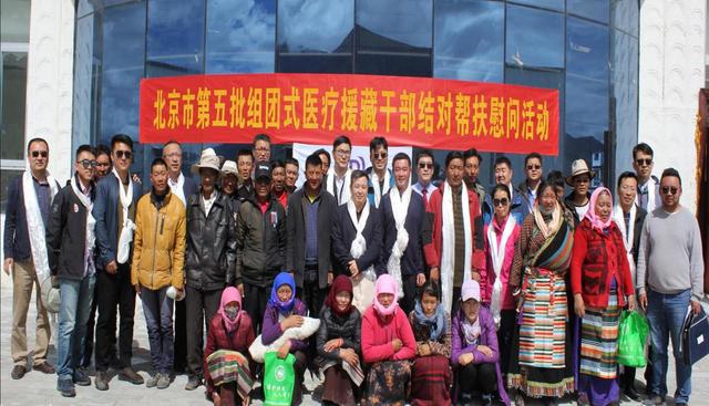 北京市第五批“組團(tuán)式”援藏醫(yī)療人才開展與當(dāng)?shù)厝罕娊Y(jié)對幫扶活動(dòng)助力脫貧攻堅(jiān)。圖為援藏醫(yī)療隊(duì)員與當(dāng)?shù)亟Y(jié)對群眾合影。