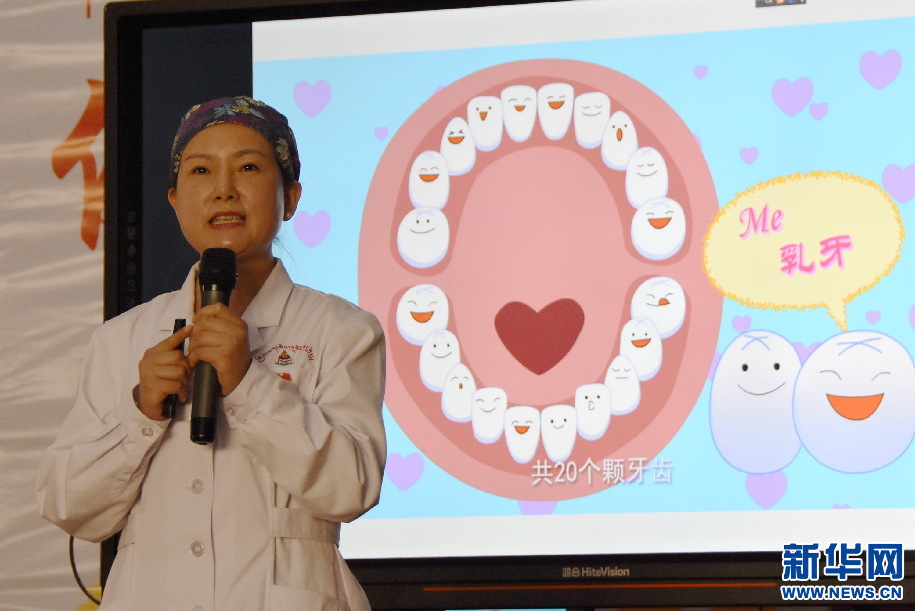 這是18日在西藏山南市第三小學禮堂的一個場景。在全國愛牙日來臨之際,湖南省第九批援藏工作隊組織的愛牙公益活動于當日舉行。中南大學湘雅口腔醫(yī)(學)院援藏醫(yī)生李毅萍為在場的300多名小學生和家長,做了一場生動活潑的口腔衛(wèi)生知識科普。