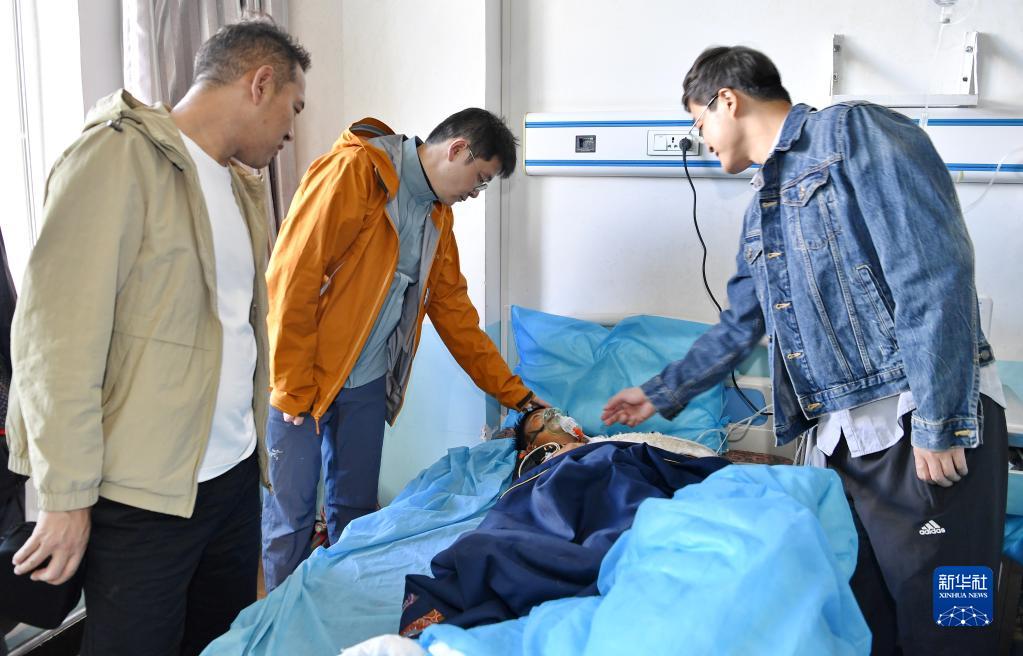 7月31日,在阿里地區(qū)人民醫(yī)院,中國醫(yī)學科學院整形外科醫(yī)院醫(yī)生王克明(右)和西藏自治區(qū)人民醫(yī)院醫(yī)生旦增念扎(左)和即將做手術的牧民巴吉聊天。新華社記者 張汝鋒 攝