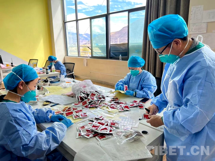 當天,西藏自治區(qū)藏醫(yī)院重癥醫(yī)學科護士長次仁卓瑪跟同事一起進駐方艙醫(yī)院,主動投身戰(zhàn)“疫”一線,與同事們一起為患者辦理出、入艙手續(xù)、發(fā)放藥品,監(jiān)督患者吃藥、給患者測體溫、做核酸,為患者做心理疏導、送去藏藥、消毒消殺、處理醫(yī)療垃圾等工作。