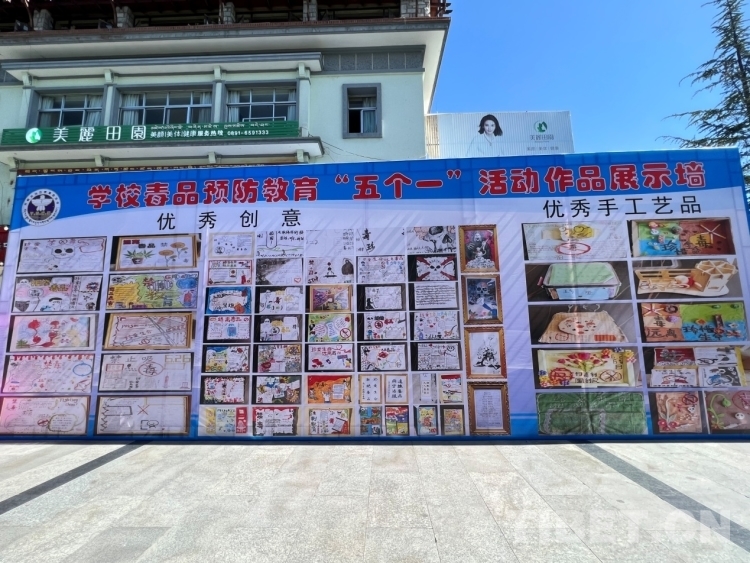 圖為校園毒品預防教育“五個一”活動作品展示墻 攝影:德吉卓瑪