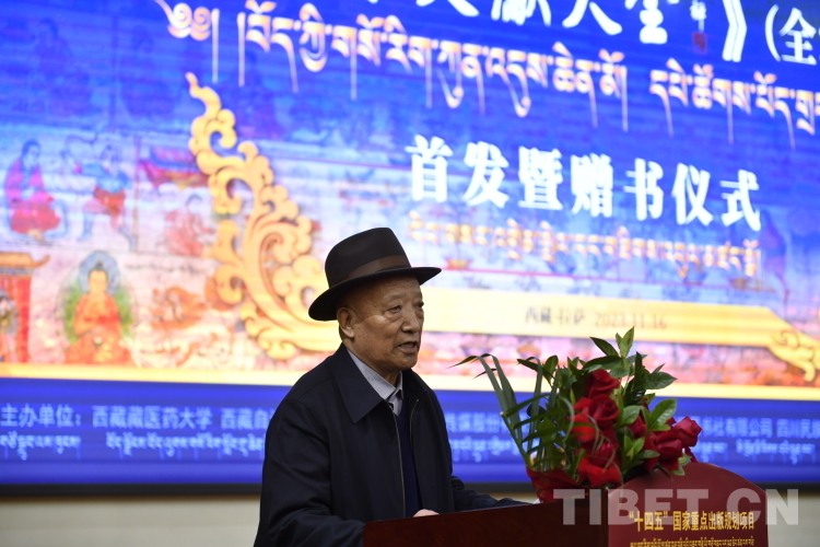 西藏藏醫(yī)藥大學米瑪校長代表主辦方在致辭中表示,《大全》是集藏醫(yī)藥學界之力的一項重大成果,以西藏藏醫(yī)藥大學為例,作為藏醫(yī)藥研究的重要力量,在《大全》編纂整理過程中,先后派駐多名業(yè)務(wù)骨干前往成都喜馬拉雅文庫參與審讀。國醫(yī)大師旺堆教授更是親點20名學識深厚的中青年教師,組成《大全》的拉薩審讀分部,為全書的高品質(zhì)問世做出了應(yīng)有的貢獻。