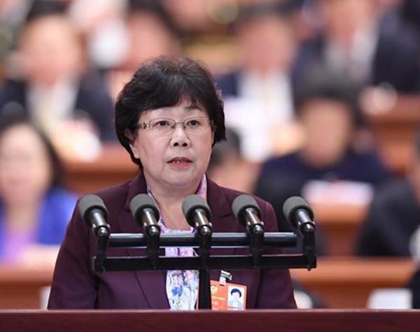 圖為曹小紅作大會(huì)發(fā)言 攝影:新華社記者 燕雁