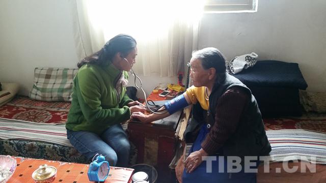 圖為次仁卓瑪(左)在為老人進行體檢。