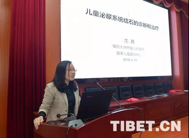 圖為復旦大學附屬兒科醫(yī)院沈茜教授結合自己多年的臨床診治經(jīng)驗和學術研究成果做了簡短而精彩的學術講座。日喀則市人民醫(yī)院供圖