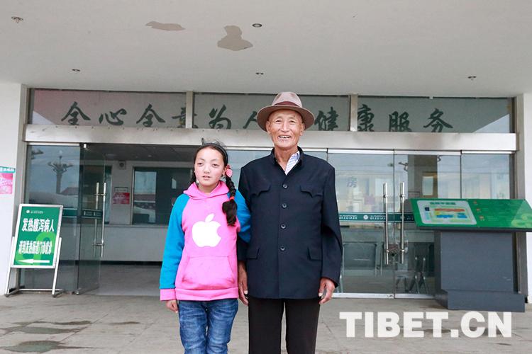 澤旺卓瑪與爺爺在若爾蓋縣人民醫(yī)院。攝影:陳衛(wèi)國