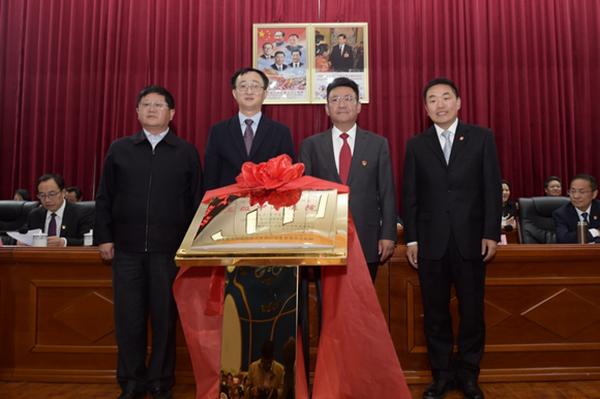 圖為西藏自治區(qū)衛(wèi)生和計劃生育委員會黨組成員、副主任胡學軍,上海市衛(wèi)生和計劃生育委員會主任鄔驚雷,西藏自治區(qū)人民政府副主席、日喀則市委書記張延清,上海市第八批援藏干部聯(lián)絡組組長、日喀則市委副書記、常務副市長倪俊南(從左至右)為日喀則市人民醫(yī)院掛牌三級甲等醫(yī)院 解放日報 曹磊攝