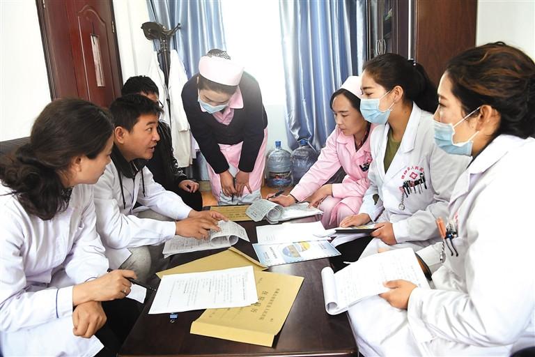 圖為援藏醫(yī)生在與瓊結(jié)縣人民醫(yī)院醫(yī)務(wù)人員交流業(yè)務(wù)。記者 洛桑 攝
