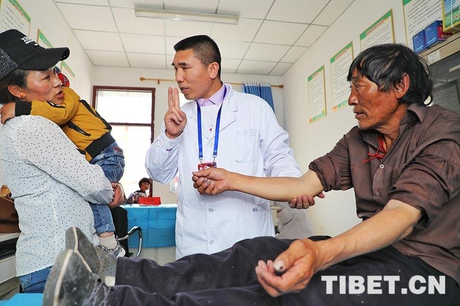 圖為王現(xiàn)海在歐拉秀瑪鄉(xiāng)衛(wèi)生院為藏族同胞義診。