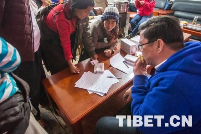 尕爾娘村是碌曲縣最偏遠的村子之一,這里與四川阿壩只有一河之隔,全村共有91戶380余人。當?shù)蒯t(yī)療條件艱難,聽到有北京來的專家,各種病狀的患者都圍了上來。溫建民除了看骨科,還要兼顧冠心病、婦科炎癥、膽囊炎等多種病癥。