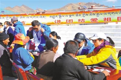 圖為阿里地區(qū)醫(yī)療人才組團式援藏工作隊的專家們正在為日土縣日松鄉(xiāng)甲崗村群眾義診。溫凱 攝