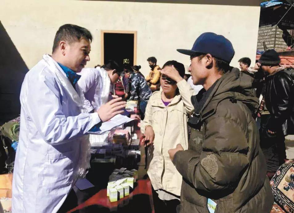 李川江在基層向群眾宣傳預防疾病常識并為群眾發(fā)放藥品