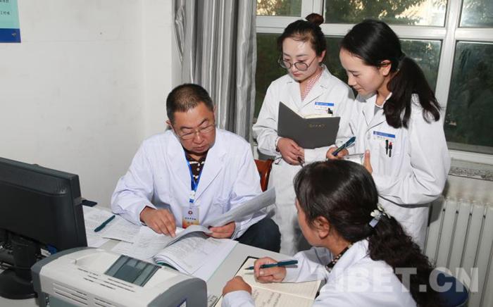圖為援青醫(yī)療干部在醫(yī)院指導工作