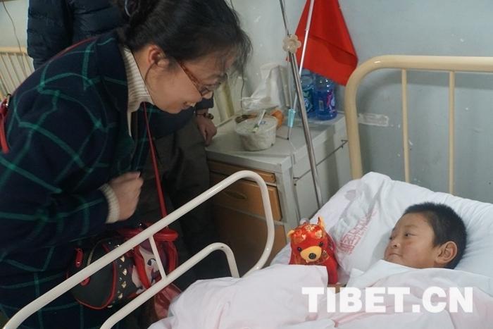 中國(guó)西藏網(wǎng)訊 “我們叫‘刀旦’,但是一點(diǎn)兒都不‘搗蛋’,今天表現(xiàn)真棒,阿姨再獎(jiǎng)勵(lì)給你一個(gè)玩具?!睂?duì)中日友好醫(yī)院的護(hù)士們來(lái)說(shuō),這個(gè)來(lái)自遠(yuǎn)方的藏族孩子,懂事得讓她們心疼?!傲鶜q的孩子,不管打針、輸液,還是做各種檢查,一次都沒(méi)哭過(guò),我們看著都特別窩心?!必?fù)責(zé)照顧蘇奴刀旦的護(hù)士們都對(duì)這個(gè)小小男子漢疼愛(ài)有加。