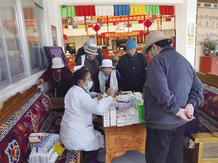 拉薩市衛(wèi)生健康委副主任張國紅說:“此次慰問活動不僅豐富了老人們的精神文化生活,也進(jìn)一步弘揚了‘尊老、敬老、愛老、助老’的良好社會風(fēng)氣。”文藝活動結(jié)束后,拉薩市人民醫(yī)院的兩名西醫(yī)和城關(guān)區(qū)嘎瑪貢桑社區(qū)衛(wèi)生服務(wù)中心的兩名藏醫(yī)為老人們進(jìn)行了義診服務(wù),根據(jù)老人們的實際需要免費發(fā)放了價值5000元的藥品。