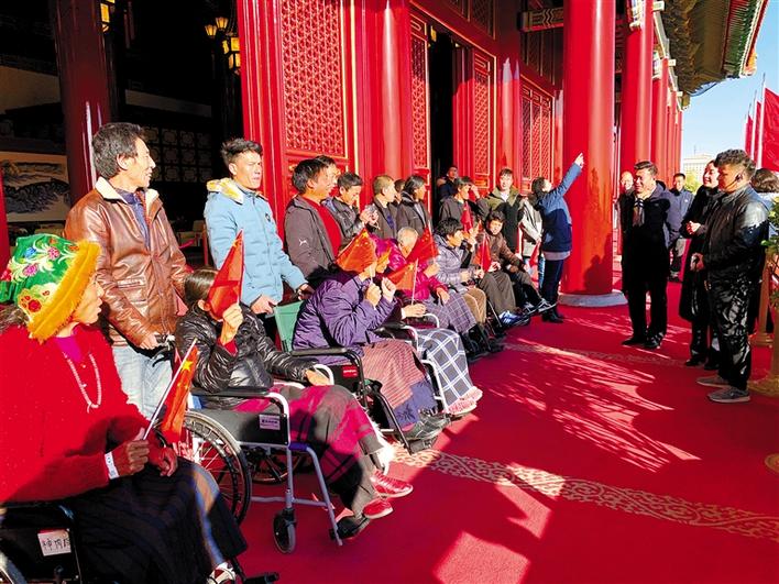 組織赴京治療的大骨節(jié)病患者在天安門,感受黨的恩情。