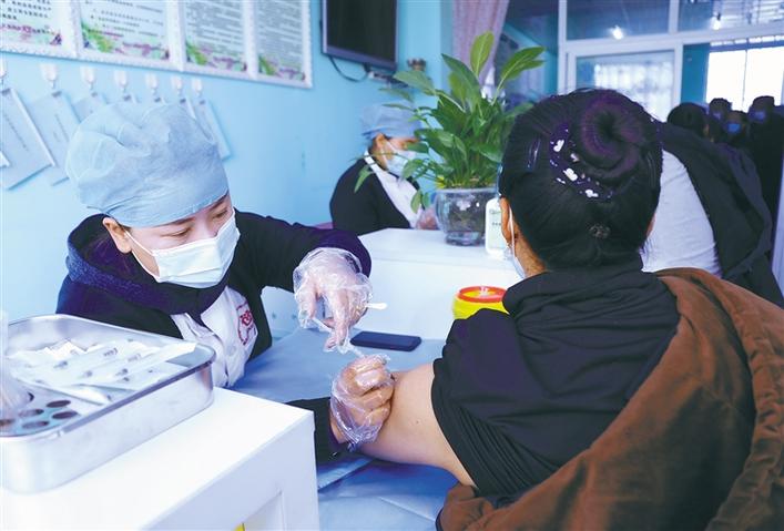 圖為城關(guān)區(qū)轄區(qū)重點(diǎn)人群正在接種疫苗。 記者 格桑倫珠 本報(bào)通訊員 陳海兵 實(shí)習(xí)生 尼瑪拉珍 攝