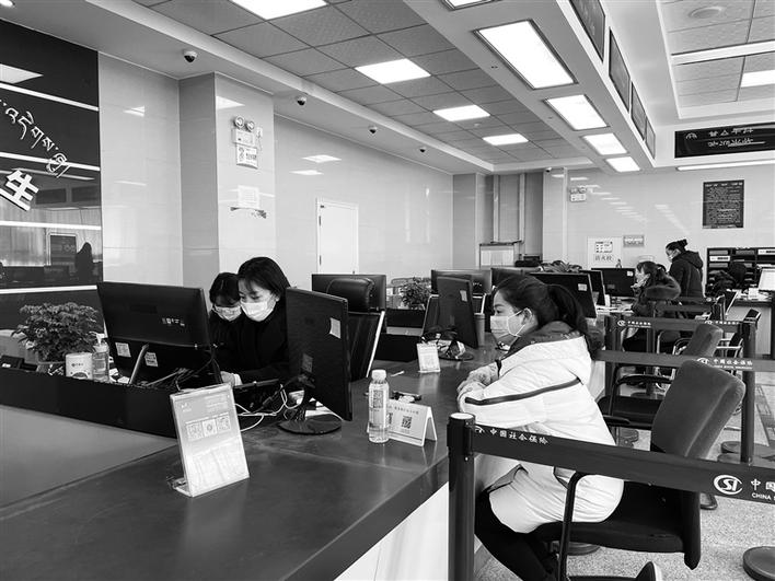 市民在拉薩市人社局人社大廳辦理業(yè)務(wù)。