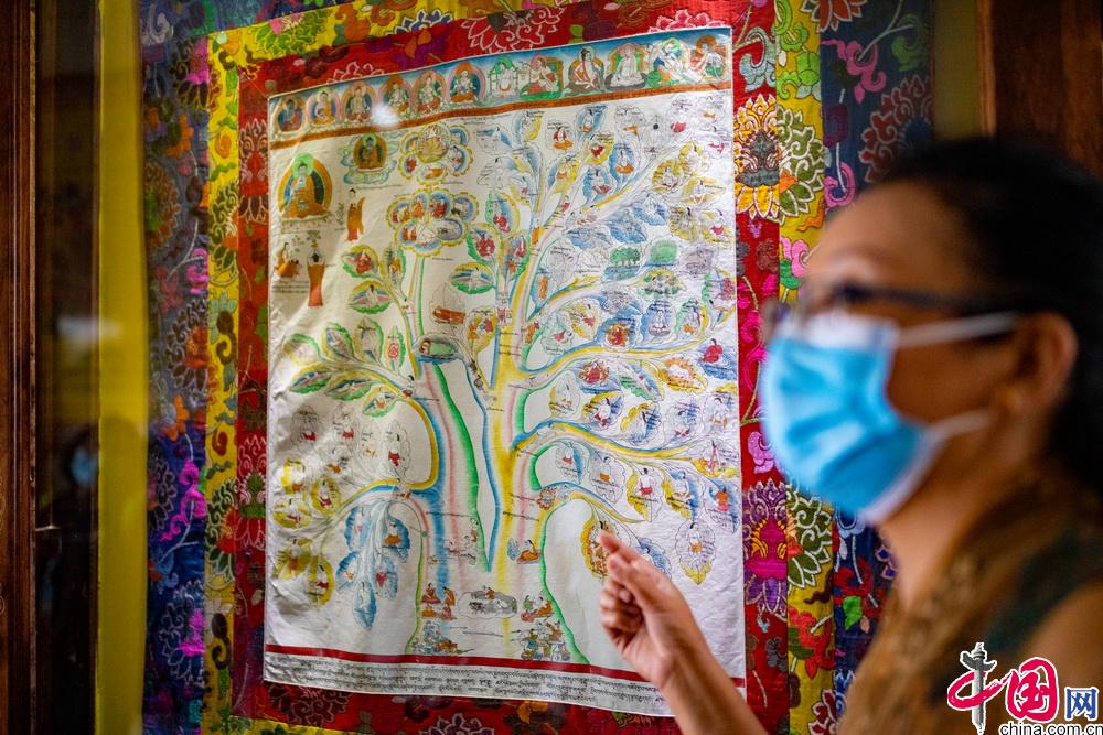 西藏藏醫(yī)藥大學開設特色鮮明的藏醫(yī)藥學唐卡教學課程?,F有醫(yī)學唐卡由十七世紀藏醫(yī)藥大家第司.桑杰嘉措創(chuàng)建,距今已有300多年的歷史。醫(yī)學唐卡用歸納、總結的方式將藏醫(yī)藥典籍《四部醫(yī)典》的主要內容以“樹喻”方式繪示出來。成書于1300多年的《四部醫(yī)典》是藏醫(yī)藥學理論的根本大典。包括總則醫(yī)典、論述醫(yī)典、秘訣醫(yī)典和后續(xù)醫(yī)典。內容涵蓋藏醫(yī)生理學、病理學、診斷學、治療學等基礎理論,細化了婦科、兒科、內科、外傷等學科,包含了解剖學、護理學、藥學等眾多學科。圖為學校老師在對醫(yī)學唐卡進行講解。中國網記者 鄭亮攝
