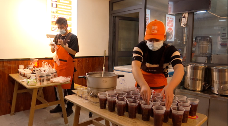 8月12日凌晨5時許,天還沒亮,“五餡包”老板帶領(lǐng)餐廳工作人員來到了店里,開始準(zhǔn)備當(dāng)天的早餐。九點(diǎn)鐘,記者在后廚看到一份份熱乎乎的包子、豆?jié){、稀飯陸續(xù)出鍋,餐飲工作人員將所有餐品細(xì)心打包好,便和同事一起出發(fā),將愛心早餐送到核酸檢測點(diǎn)。