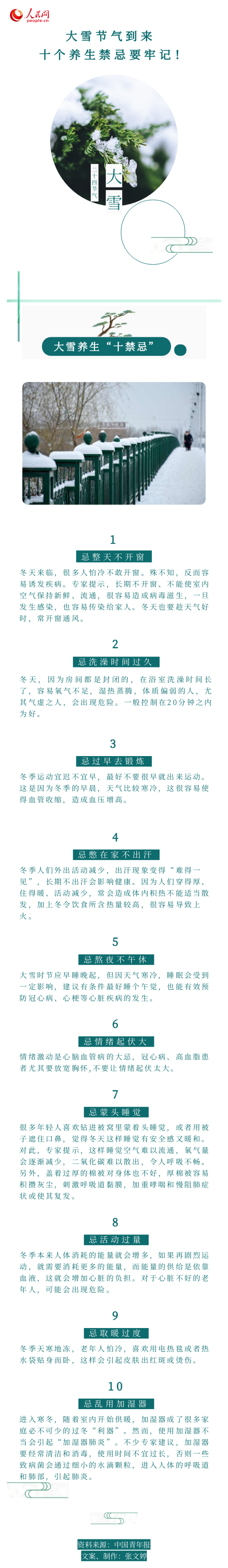 大雪節(jié)氣到來 有關(guān)養(yǎng)生的這十個禁忌要注意