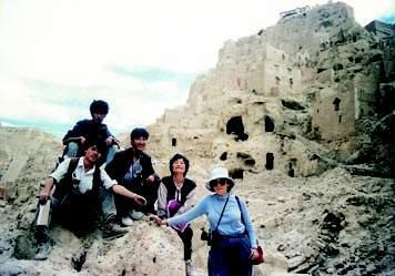 本文作者(中)在阿里古格考察時(shí)與著名作家馬麗華(右二)和南希教授(右一)等人的合影