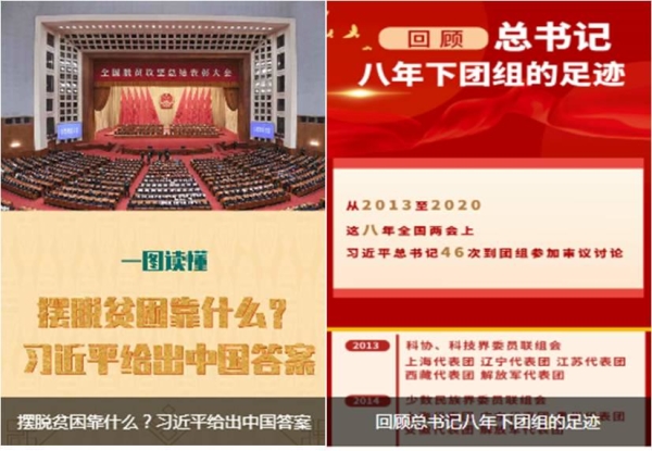 兩會(huì)期間,“云上會(huì)”記者與中心編輯、后方記者密切配合,推出了一批有分量、有新意的優(yōu)秀作品。重點(diǎn)策劃習(xí)近平總書(shū)記下團(tuán)組系列融媒體報(bào)道,包括系列長(zhǎng)圖《一圖回顧|8年兩會(huì)“下團(tuán)組”》、系列快閃短視頻《兩會(huì)金句|八年“下團(tuán)組”習(xí)近平總書(shū)記都說(shuō)過(guò)啥》、系列海報(bào)《向總書(shū)記匯報(bào)》等作品,網(wǎng)友點(diǎn)贊:“句句鏗鏘,為習(xí)近平總書(shū)記點(diǎn)贊!”“相信黨一定可以帶領(lǐng)我們走向輝煌!”