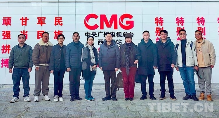 圖為調(diào)研組一行與中央廣播電視總臺西藏總站相關(guān)負(fù)責(zé)人、工作人員合影留念
