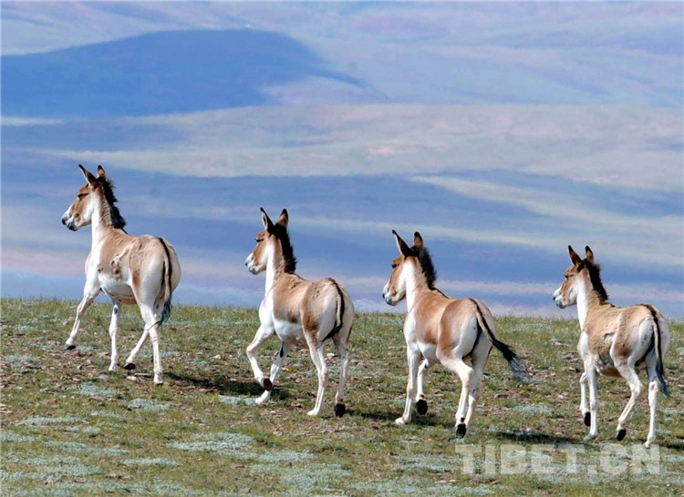 圖為奔跑在羌塘國(guó)家級(jí)自然保護(hù)區(qū)的國(guó)家一級(jí)保護(hù)動(dòng)物藏野驢(2009年) 攝影:唐召明