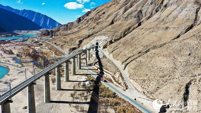 元旦期間,記者走訪川藏鐵路拉林段(下稱拉林鐵路),為您帶來這項(xiàng)工程的最新美圖。拉林鐵路正線全長435.5公里,新建正線403.1公里,設(shè)計(jì)行車速度為160km/h。全線橋梁120座,全長84.5公里;隧道共47座,累計(jì)216.5公里;橋隧比為74.66%。全線新建車站34個(gè),初期開站17個(gè),全線建設(shè)總工期為7年。