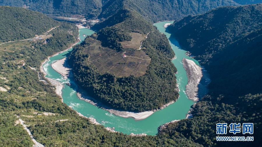 這是墨脫縣果果塘大拐彎(2月8日攝,無人機照片)。新華社記者 孫非 攝