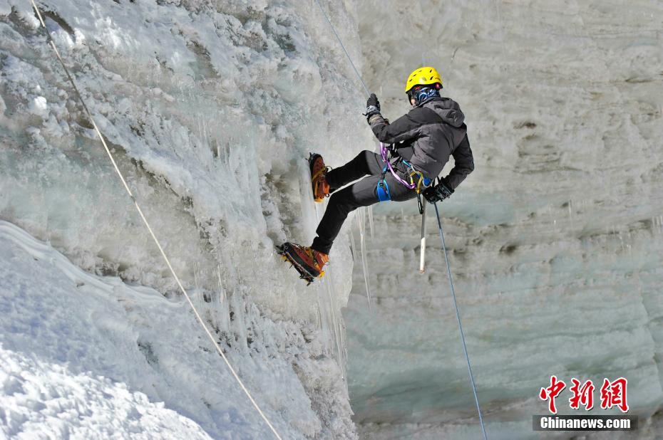 西藏拉薩河谷1號(hào)冰川(廓瓊崗日冰川)景區(qū)將與2021年4月正式全面開放,洛堆峰雪山攀登項(xiàng)目也將正式啟動(dòng)。圖為登山愛好者進(jìn)行攀登訓(xùn)練。(資料圖片)中新社發(fā) 貢嘎來松 攝