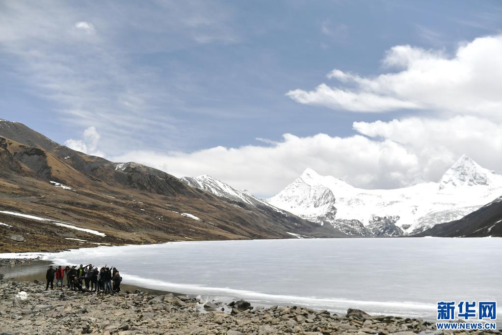 一陣強風(fēng)掠過薩普雪山腳下的冰湖時卷起湖面的薄冰(5月4日攝)。新華社記者 孫瑞博 攝