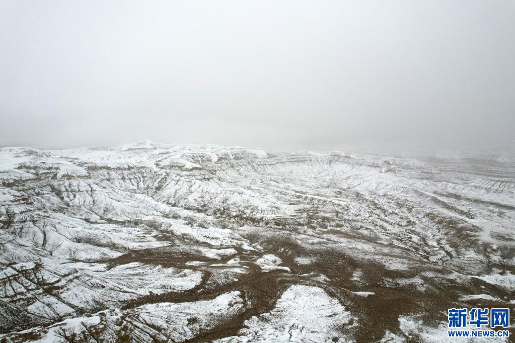 5月20日拍攝的雪中的札達(dá)土林景色(無人機(jī)照片)。新華社記者 孫瑞博 攝