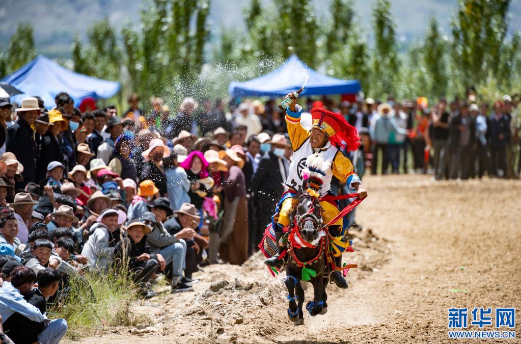 當日,位于雅魯藏布江畔山谷里的西藏山南市貢嘎縣昌果鄉(xiāng)崗旦村舉行一年一度的賽馬,迎接即將到來的收獲季節(jié)。