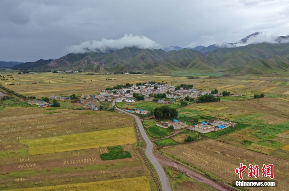 9月8日,西藏自治區(qū)拉薩市林周縣境內(nèi)的田野美景。金秋時(shí)節(jié),拉薩河谷一帶青稞成熟,呈現(xiàn)豐收美景。(無(wú)人機(jī)照片)中新社記者 貢嘎來(lái)松 攝