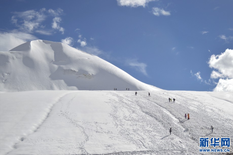 圖為游客攀爬廓瓊崗日冰川(9月14日攝)。新華網(wǎng) 貢桑央吉 攝(實(shí)習(xí)生)