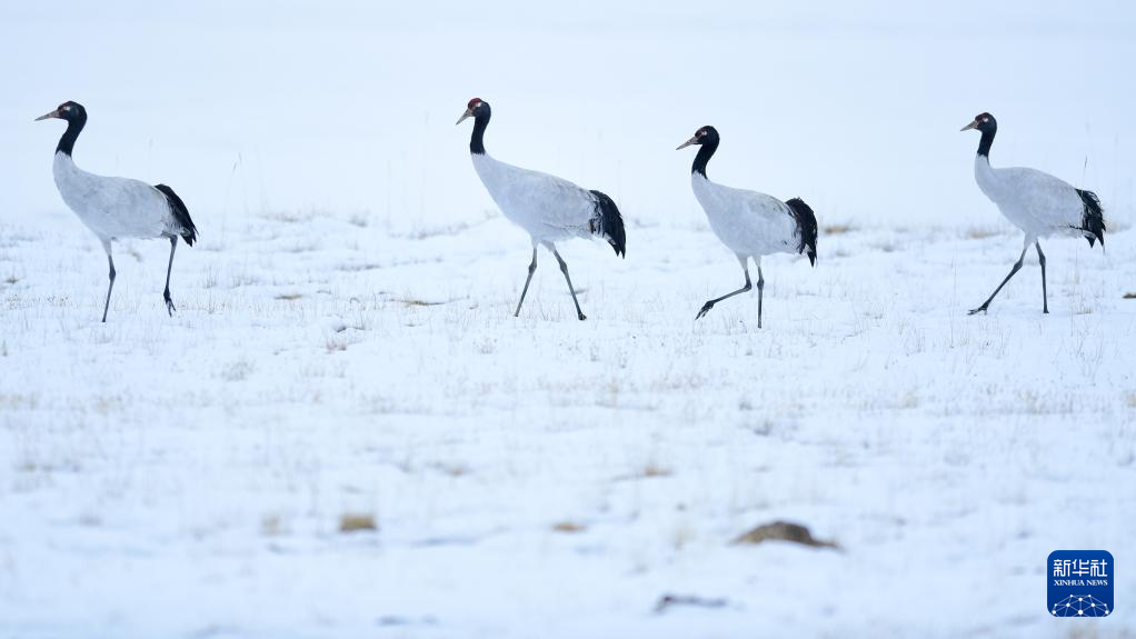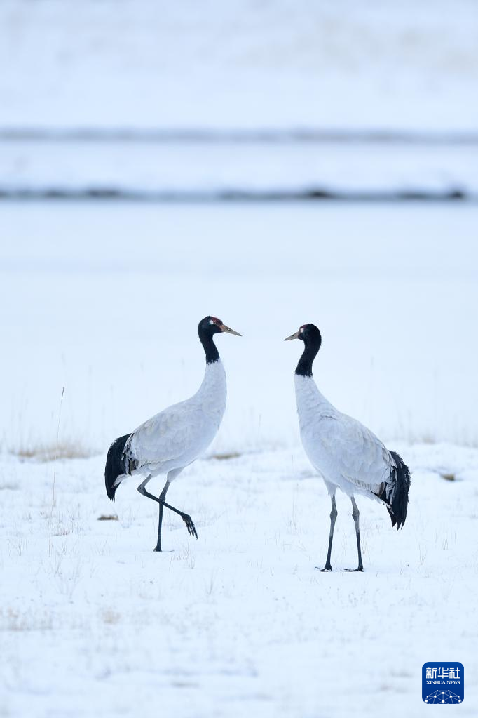 10月21日在三江源國家公園黃河源園區(qū)內拍攝的黑頸鶴。新華社記者 張龍 攝