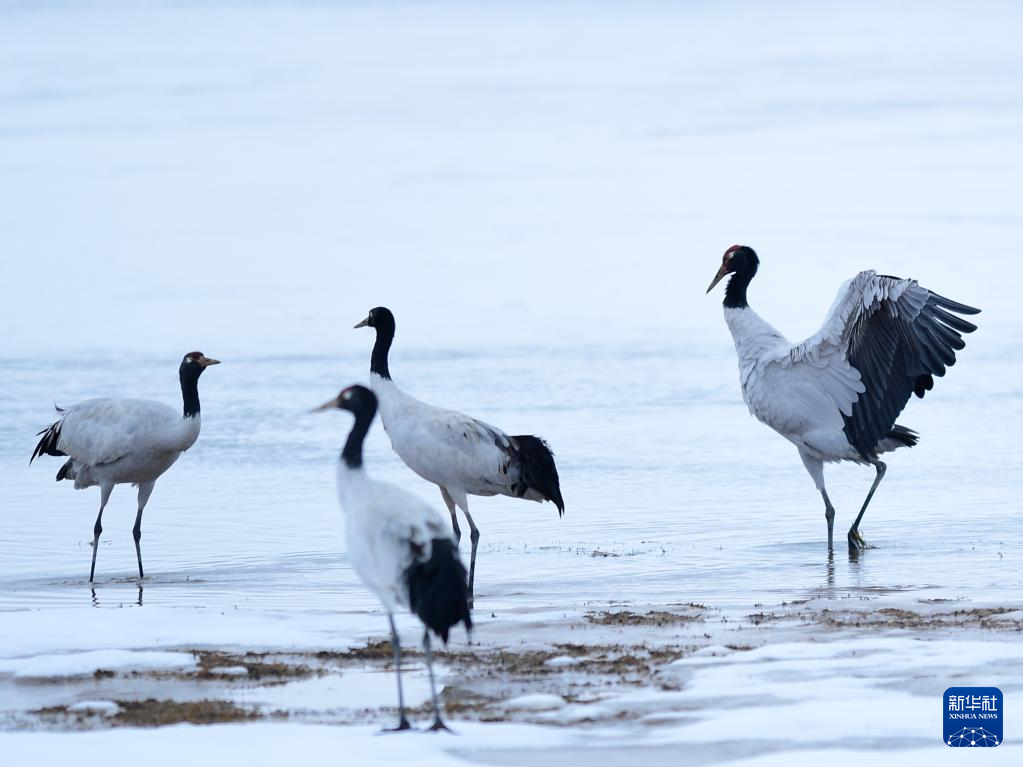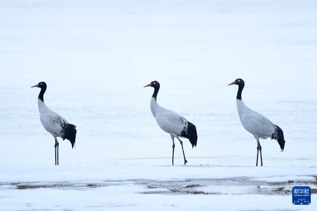 近日,在位于青海省果洛藏族自治州瑪多縣的三江源國家公園黃河源園區(qū)內,數(shù)只黑頸鶴在此棲息覓食。 黑頸鶴是國家一級重點保護野生動物,主要棲息于海拔2500米至5000米的高原沼澤地、湖泊及河灘地帶,在我國主要分布在青海、西藏、甘肅和四川北部一帶。