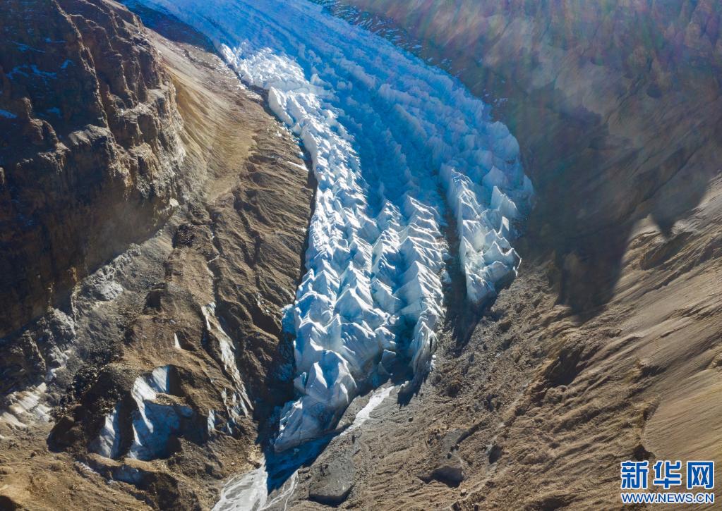 鳥瞰曲登尼瑪冰川(11月27日攝,無人機(jī)照片)。新華社記者 孫瑞博 攝